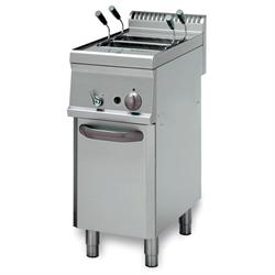 Nudelkocher, Gas, 10kW mit 1 Becken 23lt. für Nudelkörbe - Lieferung ohne Körbe - Edelstahlkorpus - Becken mit abgerundeten Ecken, 30,5x34x29cm - Hochleistungsbrenner mit 10kW - Pilotflamme & Piezozündung - mit Wasserhahn und Ablauf - Abmessung in mm (B/T/H): 350X700X850 - KW: 10 - Gewicht: 54kg