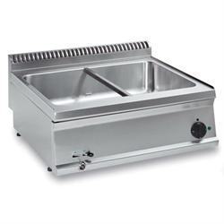 Bainmarie, elektro, 2,6kW mit 1 Becken für 1GN 2/1 h=15cm - Edelstahlkorpus - Becken mit abgerundeten Ecken & Ablauf - Heizelemente unter dem Becken - Thermostat Kontrolle bis 90°C - Abmessung in mm (B/T/H): 700X700X280 - Volt: 230 - KW: 2,6 - HZ: 50/60 - Phasen: 1 - Gewicht: 29,5kg