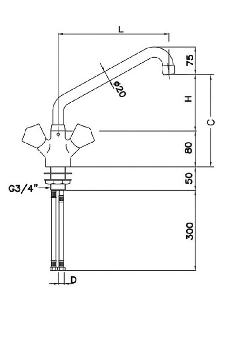 - Lochbohrung mit Ø 3/4" Gewinde-Anschluss