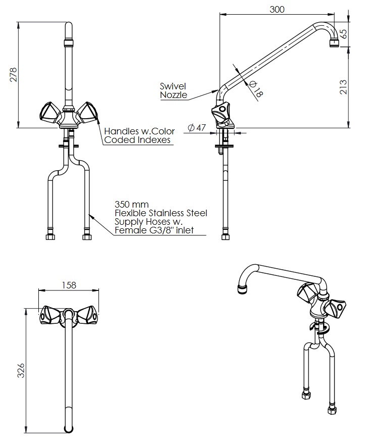 - Schwenkauslauf 360° drehbar und einer Ausladung von 30 cm