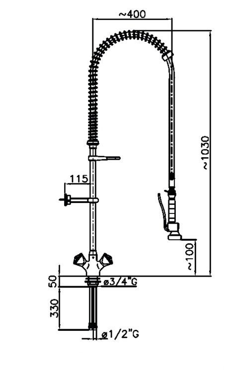 Geschirrwaschbrause mit Einloch-Mischbatterie ohne Schwenkhahn