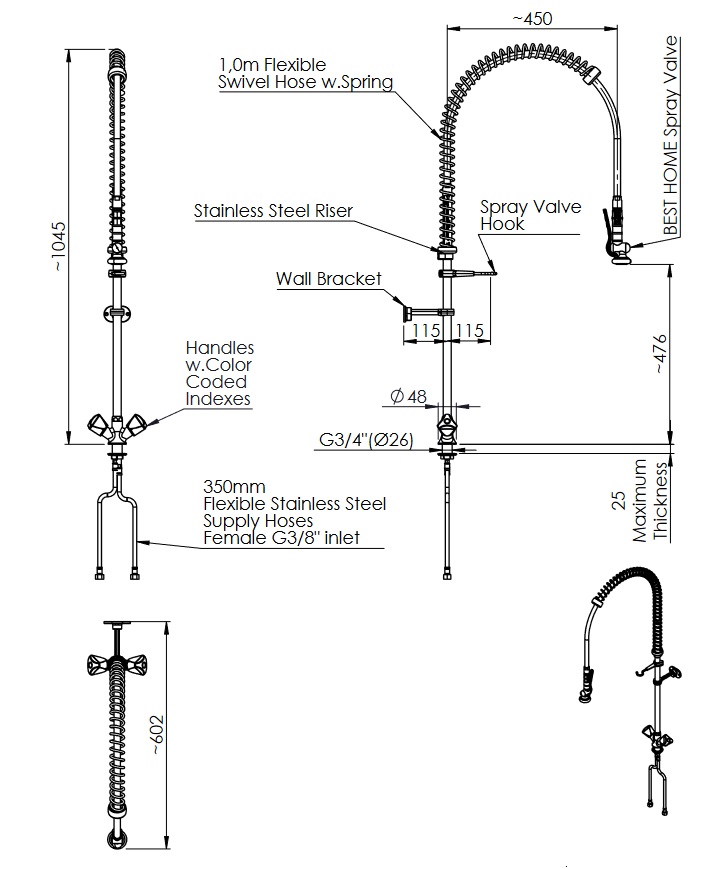 - Wassermenge an der Handwaschbrause stufenlos dosierbar, maximaler- Wasserdurchfluss 14 l/min.