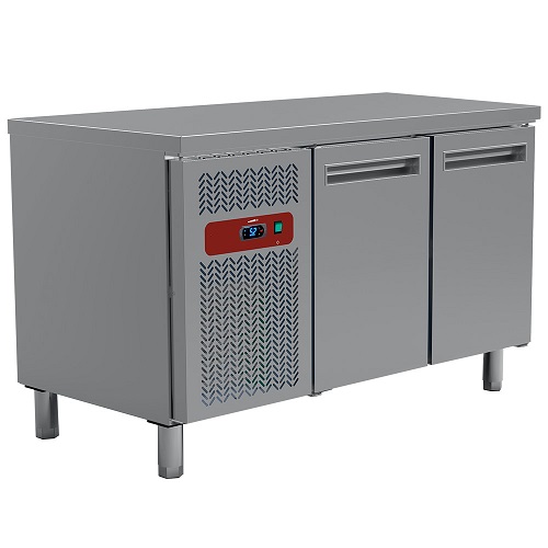 - Kompressor (Klimaeinheit +38°C), belüfteter Kondensator links installiert, frontal zugänglich (Platte auf Scharnieren), auf Schienen gelegt "ausziehbar", einfach für Wartung und Kundendienst.