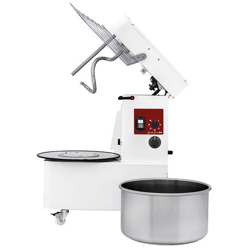 - Durchmesser der Schüssel 450 mm. (42 Liter) = +/- 32 kg Teig.