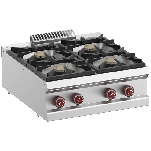 - Brenner aus Gusseisen, Messingkrone (sehr hohe Leistung). Regulierung durch Gasventil.