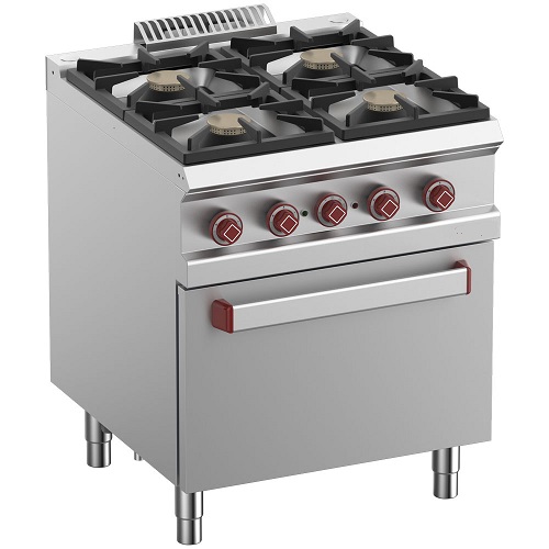 Gasherd 4 Brenner, Elektro-Umluftbackofen GN 1/1