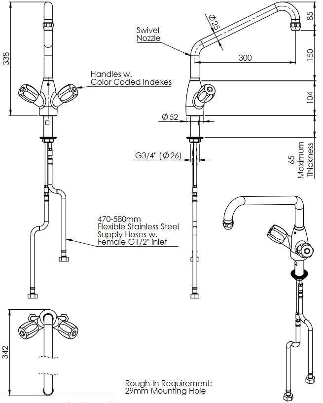 - Anschlussrohre für Kalt- und Warmwasser Ø 10x1 mm, 350 mm lang