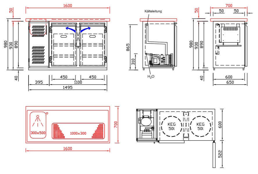 Getränke-Kühltheke * inklusiver Abdeckung und Wulstrand.