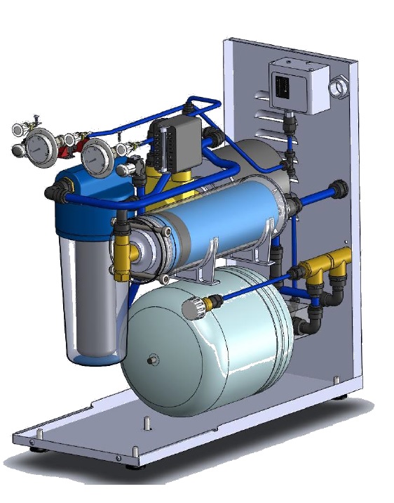 Umkehr-Osmoseanlage 150l/h, mit Druckminderer, Monoblock aus Edelstahl