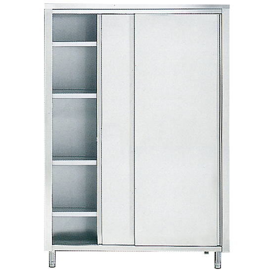 Hochschrank mit Schiebetüren- Ausführung in Edelstahl - schallgedämmte Schiebetüren- 3 höhenverstellbare Zwischenböden - höhenverstellbare Füße - Abmessung in mm (B/T/H): 1800X700X2000