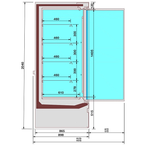 - 4 verstellbare schwarze Regale (460 mm) mit Neigungsmöglichkeit (0° bis 12°)
