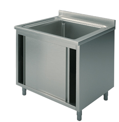 Spülschrank mit 1 Becken und Flügeltür- mit 100mm Aufkanntung- höhenverstellbare Füße- Beckengröße 500x400mm- inkl. Standrohrventiel- Abmessung L800 D600 H850mm- Gewicht 50kg