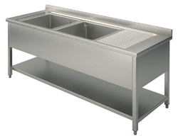 SLG2GD1656 (24) M Spültisch mit 2 Becken links, Abtropffläche rechts, Grundboden, 160x60