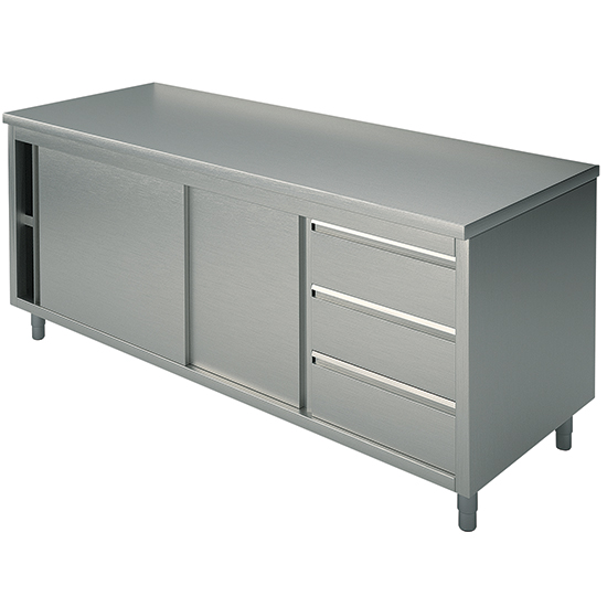 STNC36016 (24) M Edelstahl-Arbeitsschrank mit Schiebetüren, Schubladen rechts, 1600x600x850mm