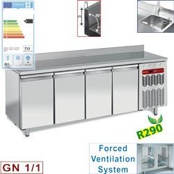 Kühltisch Umluft mit Aufkantung 4 Türen GN 1/1, mit Waschbecken