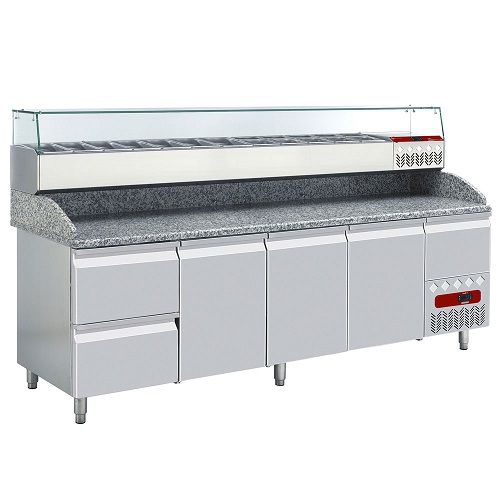 Pizzakühltisch inkl.Kühl-Aufsatzvitrine Kühlaufsatz GN 11x 1/3, 1x 1/9