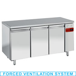 Kühltisch Umluft ohne Kältemaschine, 3 Türen GN 1/1, 405 Liter