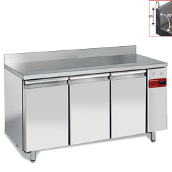Kühltisch Umluft ohne Kältemaschine mit Aufkantung, 3 Türen GN 1/1, 405 Liter